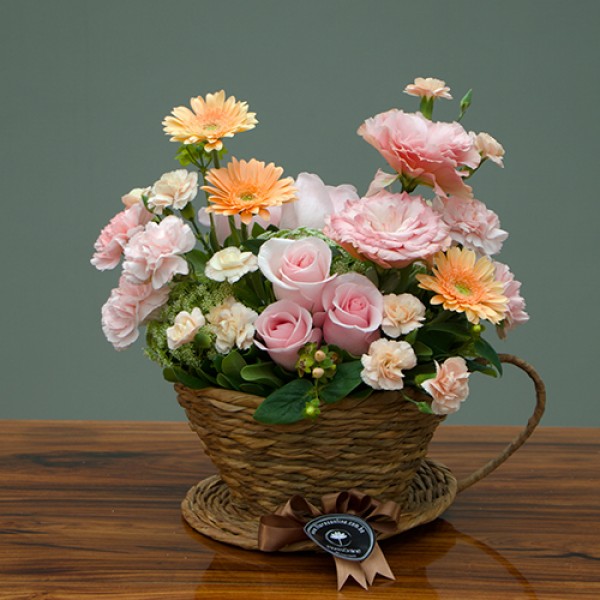 Elegante y delicada cesta en tonos pasteles.